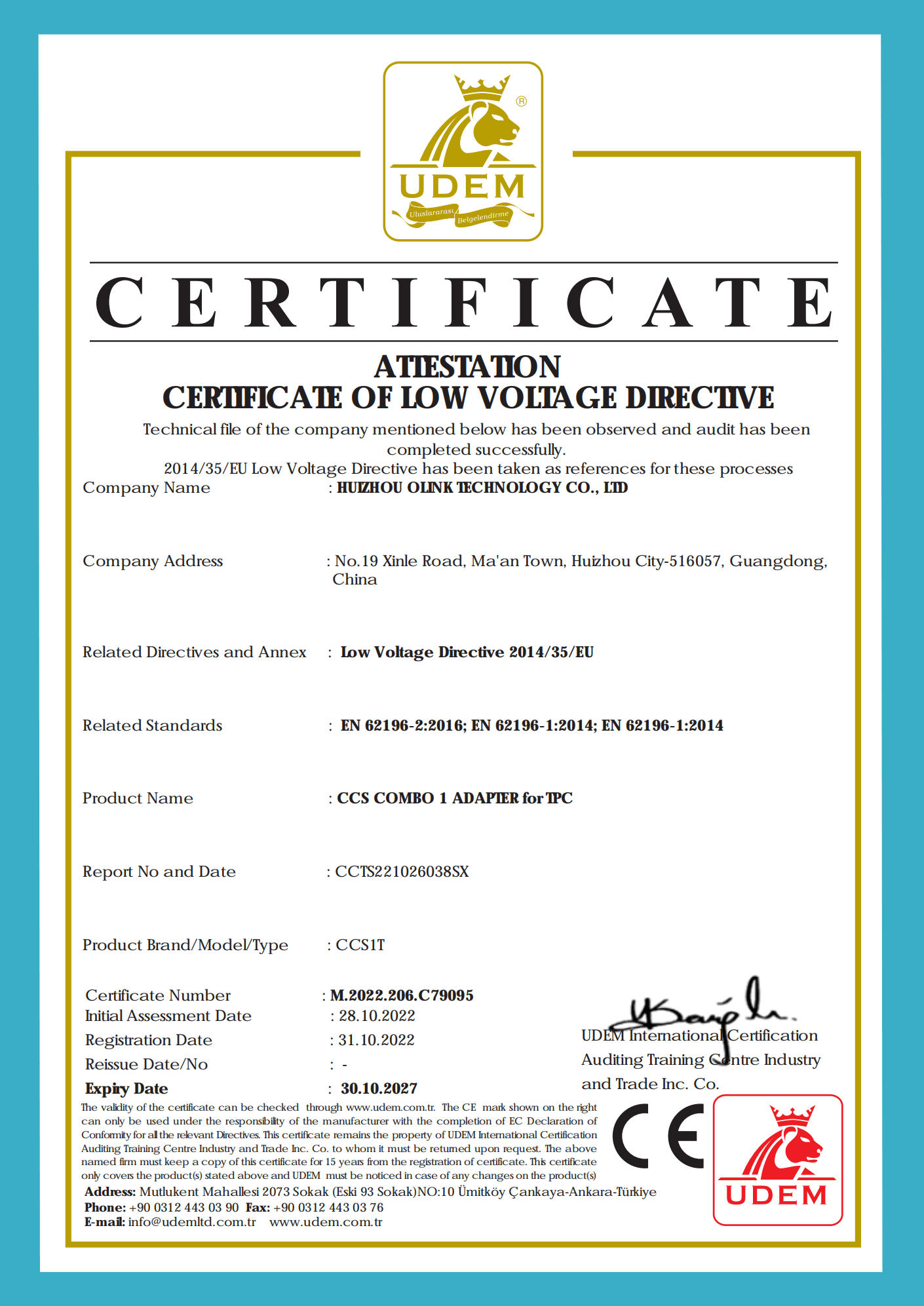 OLINK is a pioneering Chinese company and IATF16949 and IPC620 certified, specialised manufacturer focusing on electric vehicle power supply equipment and solving problems in the field of connectivity with more than 5 years of professional experience in this field. We position ourselves as a solution provider for the extreme demands of electric vehicle power supply equipment. This means that Olink places great emphasis on quality, performance, price, delivery, one-stop solutions and after-sales service. Our wide range of products includes EV adapters, EV chargers (AC and DCFC), EV extension cords, and EV charger connectors and sockets, all of which are CE, ETL, UL, FCC, and RoHS compliant.
